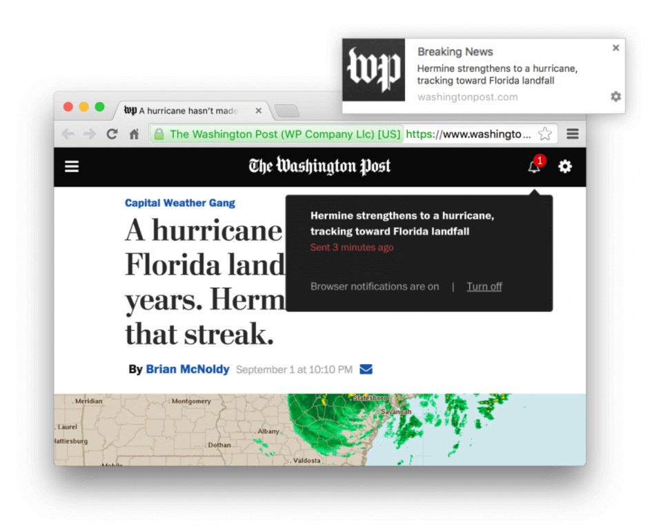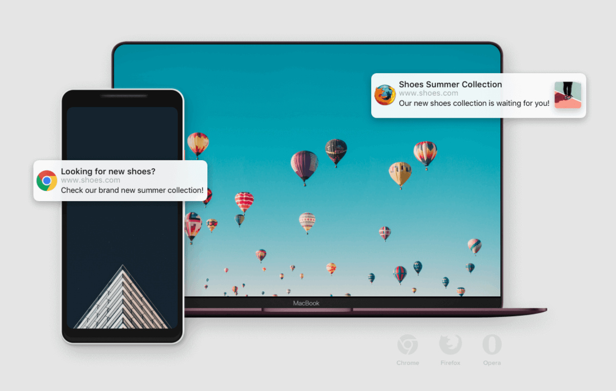 Las notificaciones web push funcionan en cualquier dispositivo que ejecute un navegador compatible, ya sea una PC o una Mac.