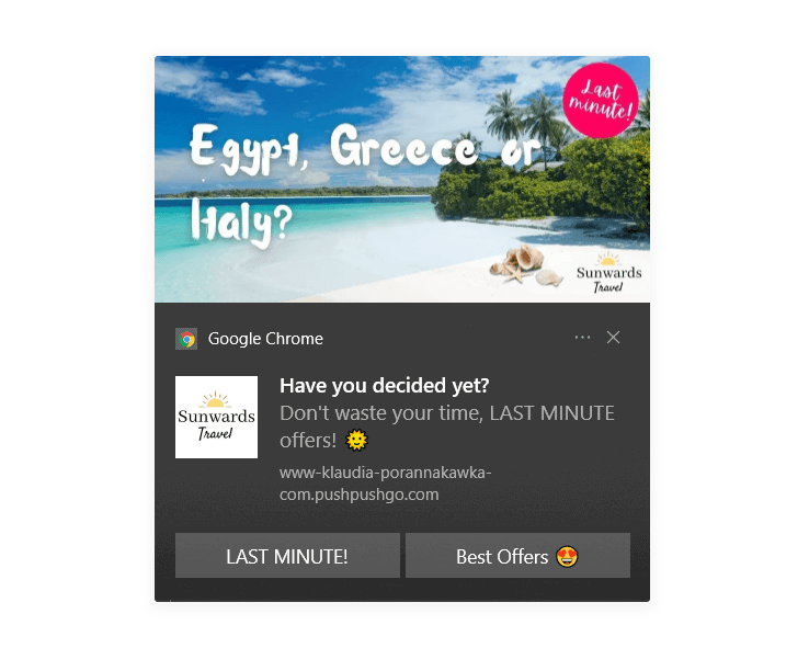 • Más fácil de implementar . Es fácil crear su propia estrategia de notificación push web y ejecutar su campaña. Esta es también una forma sencilla de atraer a más visitantes.