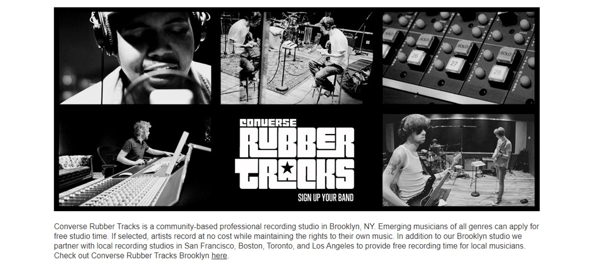 Por ejemplo, Converse instaló un estudio en Nueva York donde los artistas podían grabar su música de forma gratuita. Los artistas tienen la propiedad total de las canciones y no tienen que anunciar la marca de zapatos en absoluto. Esto tuvo un gran impacto en la popularidad de la marca en la industria del arte.