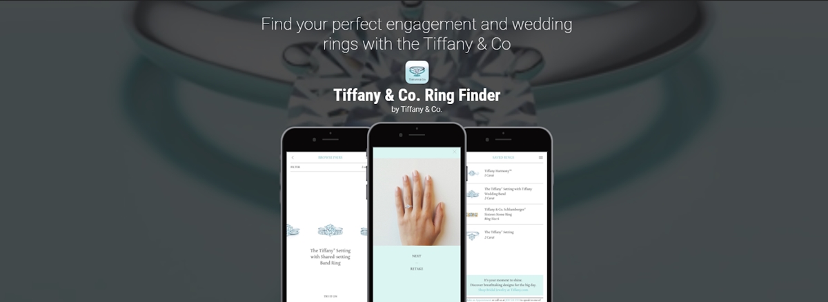 En 2015, Tiffany & Co. lanzó una aplicación que puede ayudar a los usuarios a encontrar anillos de compromiso. Los clientes pueden elegir el estilo del anillo y el peso en quilates directamente desde casa. Incluso podrían tomarse una selfie con la mano y probarse los anillos de Tiffany directamente en su dedo. Esto resultó en un enorme aumento del 20% en las ventas.