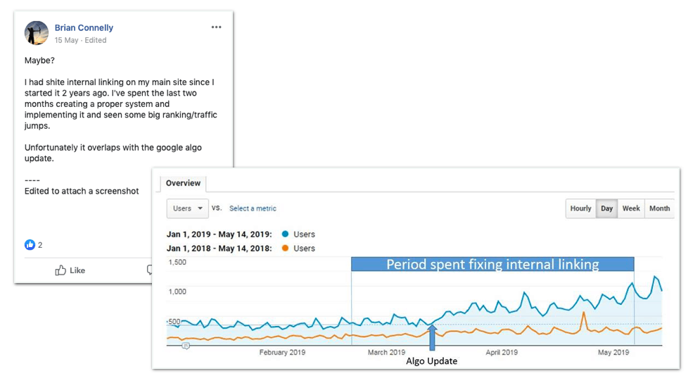 Eso es algo de evidencia. La gente sabe que los enlaces internos juegan un papel en el algoritmo de Google (o eso parece) y por una razón muy específica: Google lo dijo.