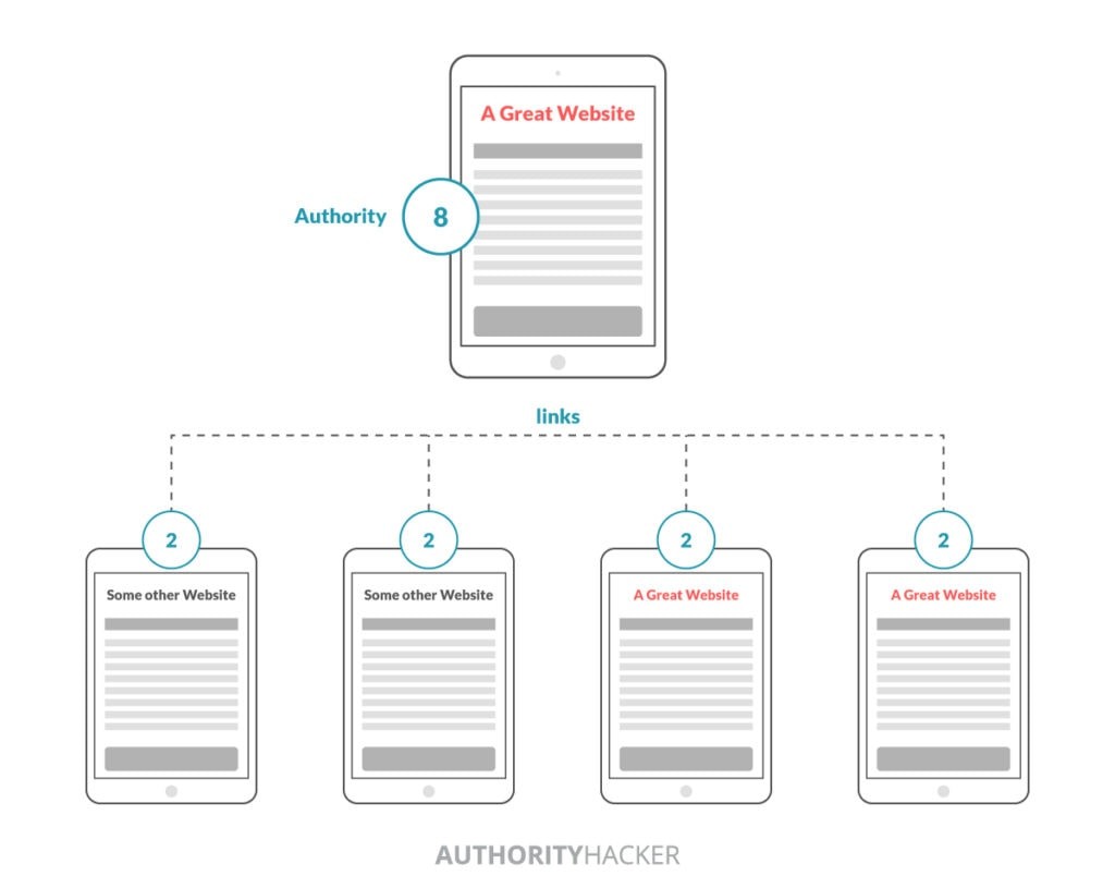 La forma en que Google clasificaba las páginas era que a cada página se le asignaba una puntuación de autoridad y con cada enlace se distribuía parte de esa autoridad.