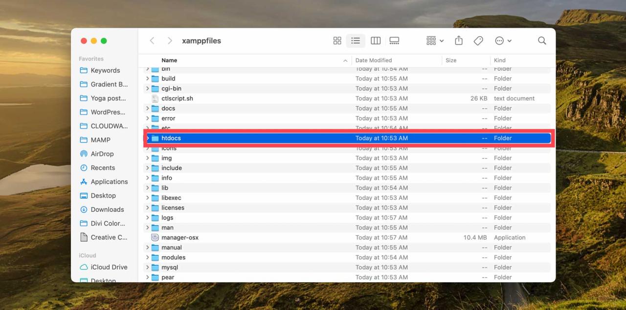 Cuando se abra la carpeta, haga doble clic en la carpeta htdocs para abrirla.