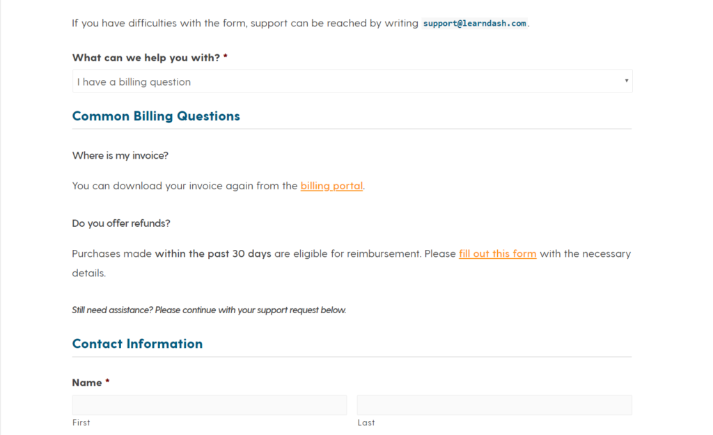 Si tiene algunos problemas técnicos y necesita ponerse en contacto con alguien de Learndash, deberá iniciar sesión en su sitio web.