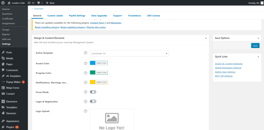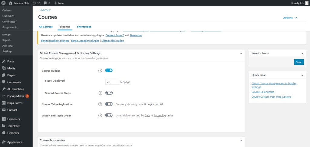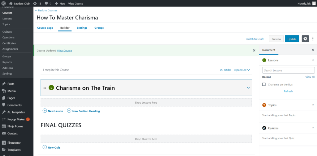 Una vez que haya agregado eso, Learndash estará en su panel de WordPress.